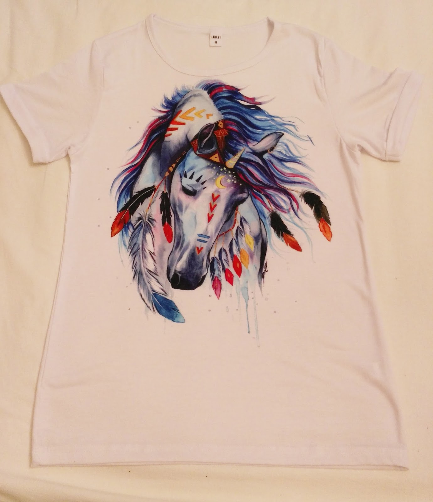 La seconda maglia che ho preso è invece una mezza manica con una grande stampa molto bella, un cavallo con molte sfumature su sfondo completamente bianco.