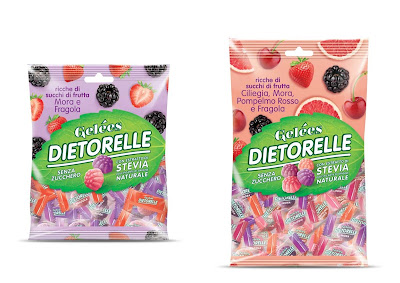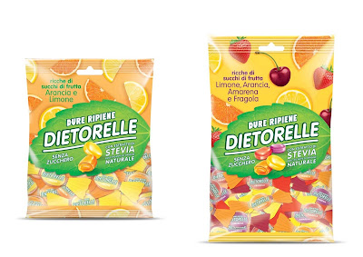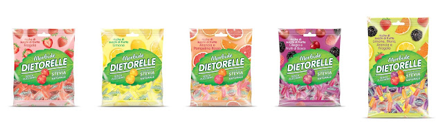 Ecco le nuove DIETORELLE, marchio leader nel mondo delle caramelle SENZA ZUCCHERO e SENZA COLORANTI AGGIUNTI.